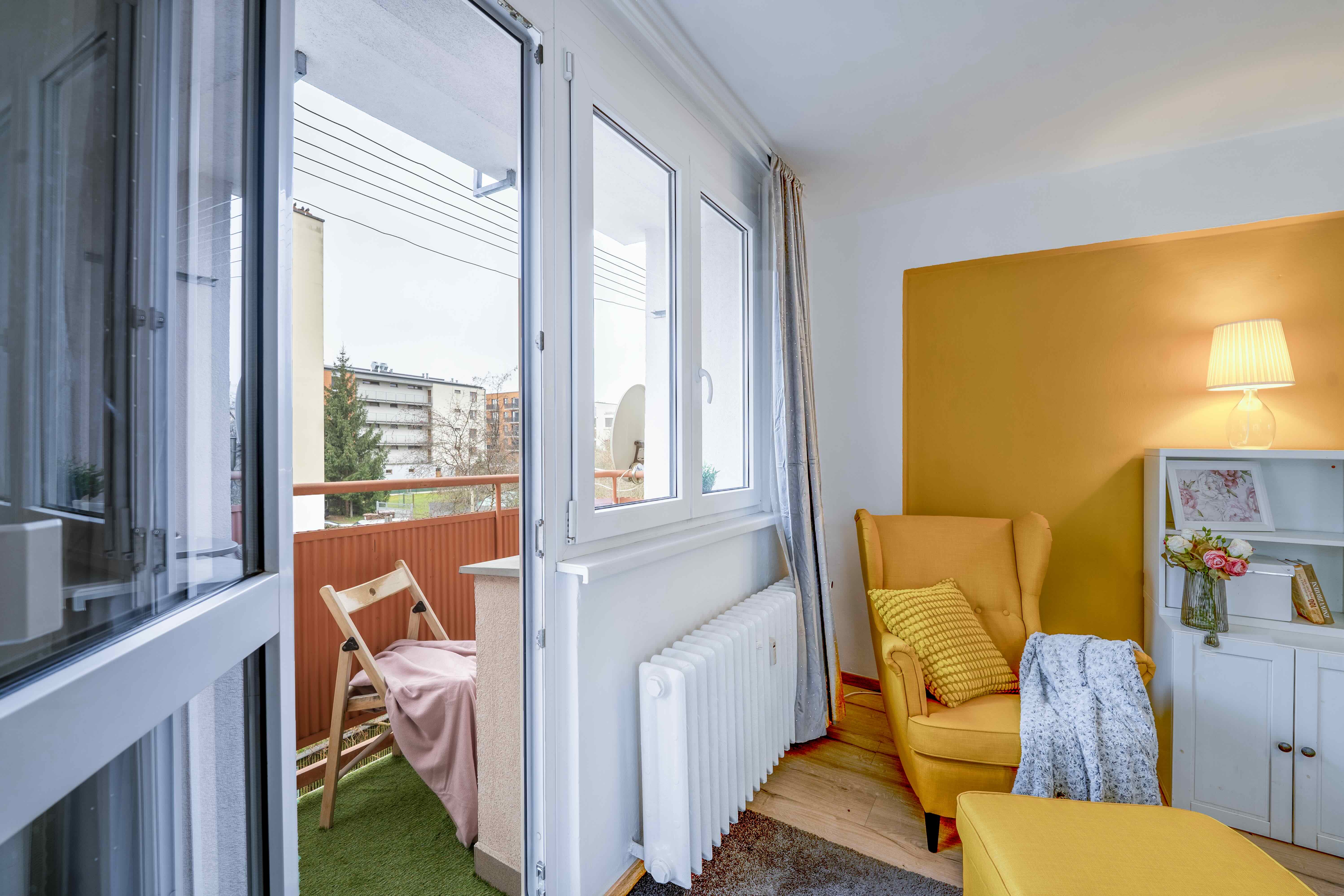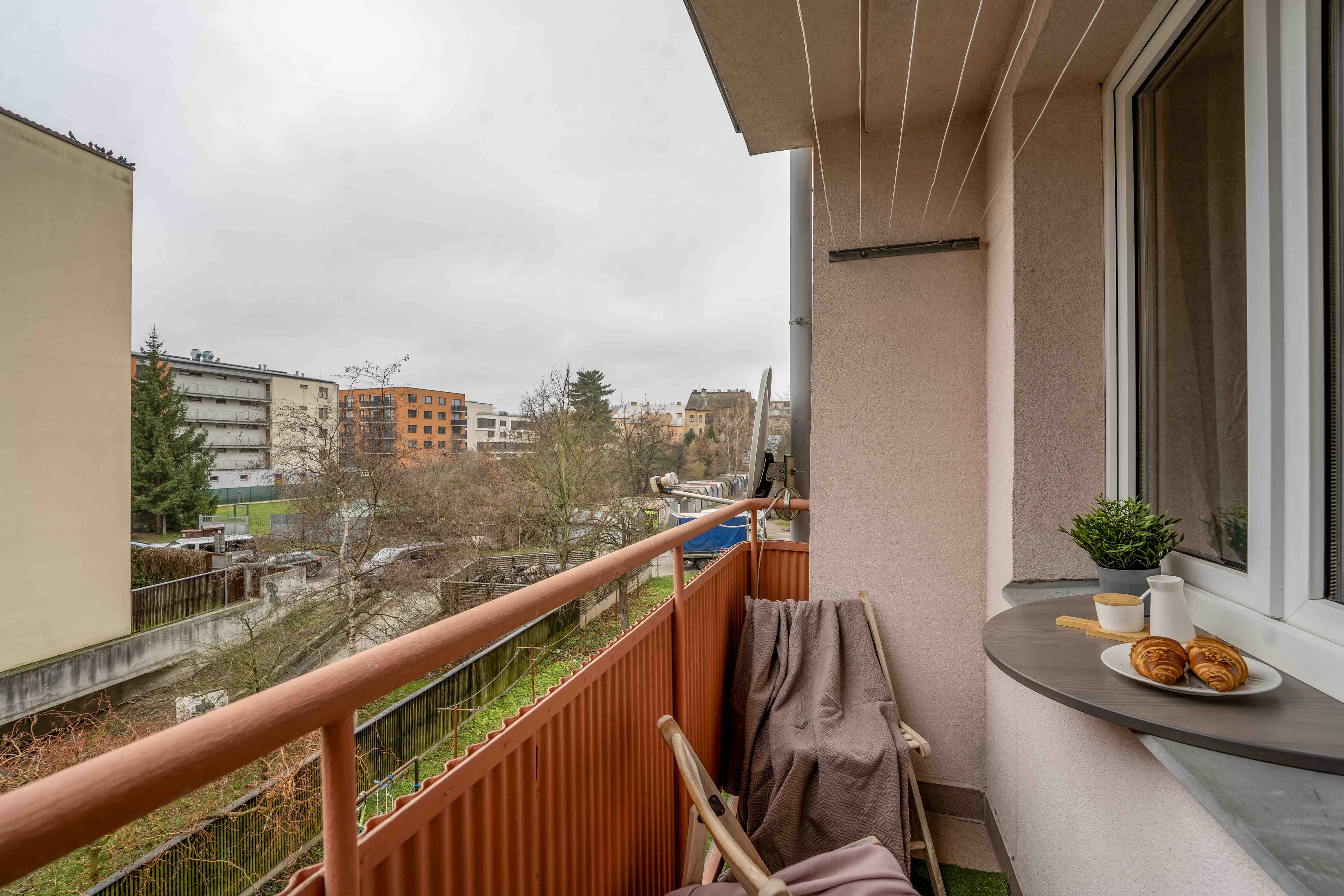 U balkonu orientovaného na jih si můžete vytvořit krásné místo na čtení nebo ranní kávu. Ložnice nabízí ideální spojení prostoru, světla a klidu.