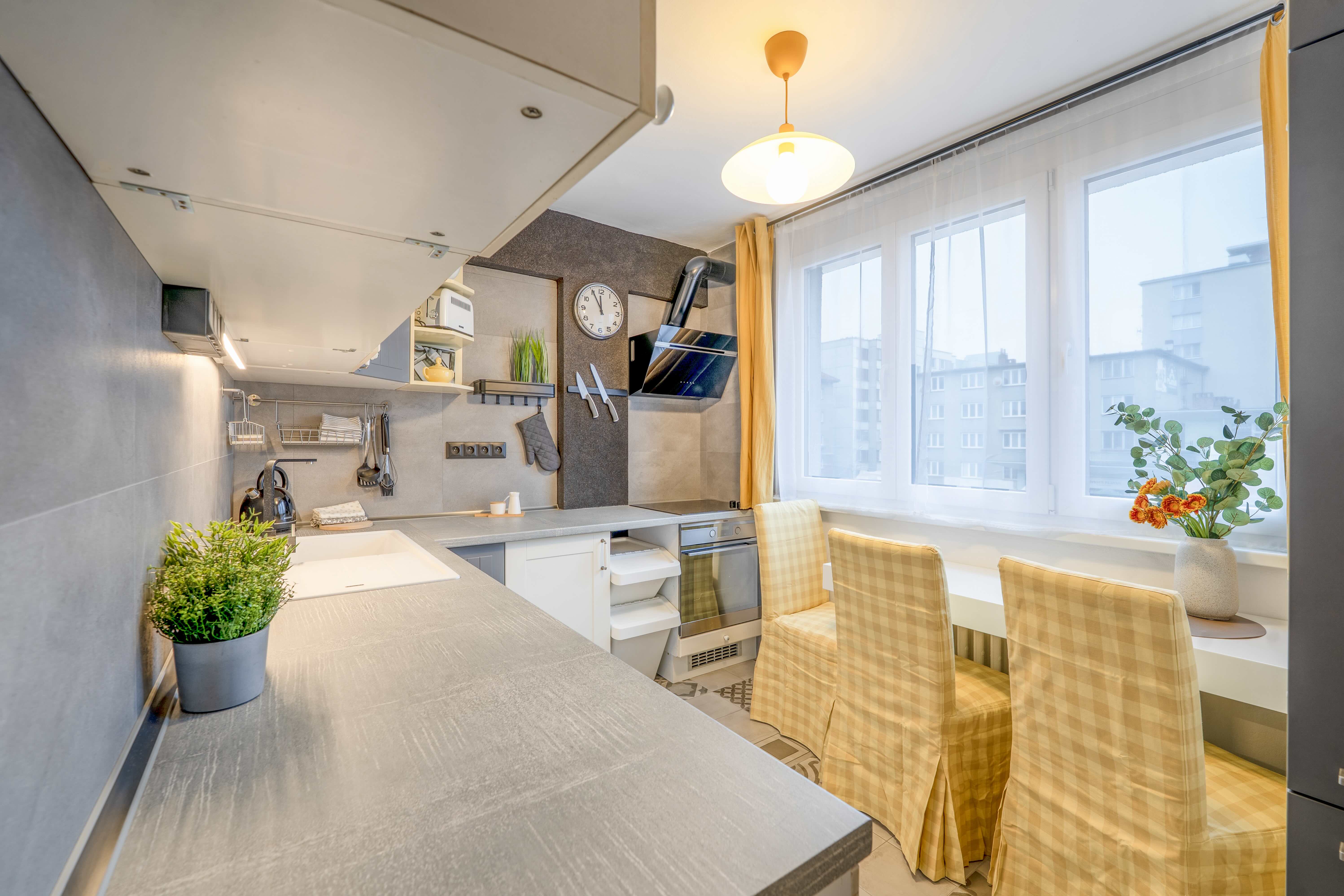 Rozsáhlá modernizace, která zde proběhla, je velmi zdařilá. Interiér působí moderně a svěže a orientace místností zajišťují dostatek světla po celý den.